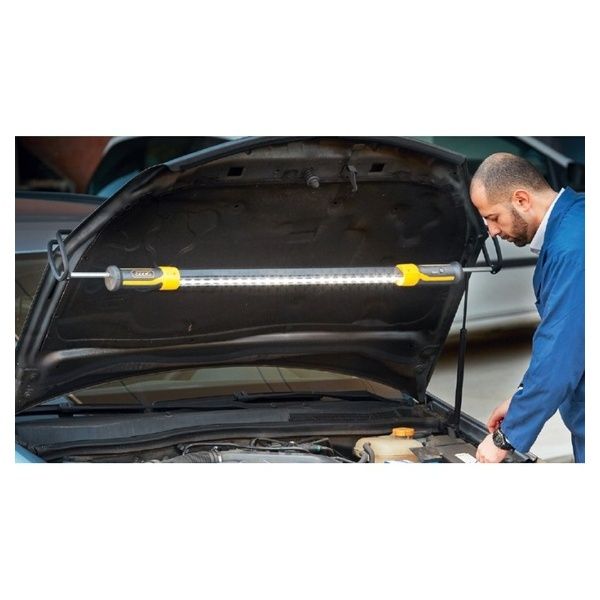 Il tubo dove è concentrato il fascio di luce è orientabile e il braccio è estendibile da 1150 a 1800 mm, questo significa che la lampada sottocofano 39900 si adatta perfettamente a tutte le esigenze. Chiusa è lunga 1150 mm e i ganci chiudono a 1000 mm, con l’estensione la chiusura dei ganci copre 1800 mm di lunghezza. Questa lampada sottocofano si adatta a qualsiasi tipo di veicolo.
