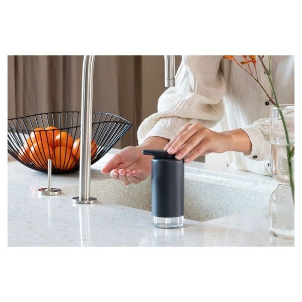 Lo stile risalta in cucina con l'eccezionale dispenser per sapone SinkStyle Brabantia. Questo elegante accessorio realizzato in vetro e metallo: per coloro che hanno a cuore l'igiene delle mani, senza trascurare il design. Questo gioiello non si limita ad erogare sapone, ma emana anche qualità assoluta, dall’ampia apertura per la ricarica al contenitore trasparente. Un brillante esempio di pratico design Brabantia