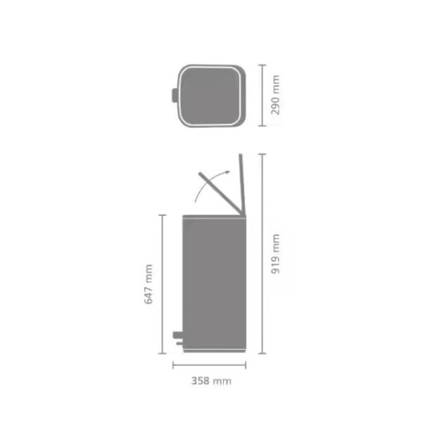Cerchi una pattumiera con un look fantastico e grande capacità? Questa pattumiera a pedale Bo Brabantia da 30 litri, è bella dentro e fuori. Salvaspazio, si apre in modo igienico con un tocco del piede e, una volta fatto, il coperchio si chiude delicatamente: una bella pattumiera senza limiti! È il momento di pulire? Rimuovi il secchio interno e sposta la pattumiera utilizzando la maniglia di trasporto. Dispone anche della funzione 'stay-open" del coperchio, per facilitare la pulizia. Questa bella soluzione per i rifiuti si adatta perfettamente anche alla parete. Scegli Bo!