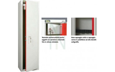 Armadio portafucili Mod. 4430.T5 a cinque posti con tesoretto portamunizioni, serratura di sicurezza e cerniere antistrappo.