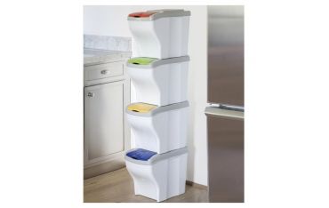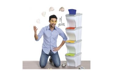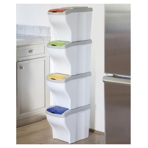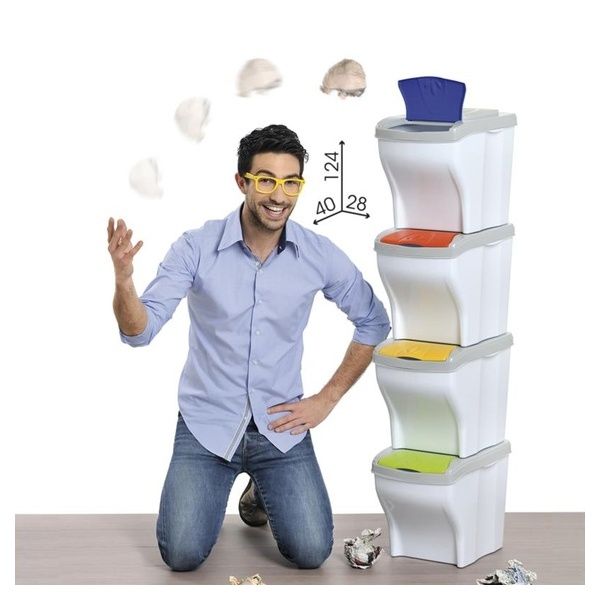 Pattumiera per la raccolta differenziata, modulare e componibile secondo necessità. Permette l'utilizzo di svariate forme di sacchetti.