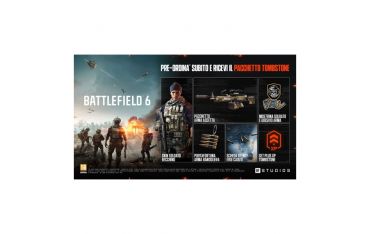 Questa è la tua guerra. Assumi il controllo prima di schierarti in prima linea. Prenota Battlefield 6 e ottieni il pacchetto Tombstone. Include una skin soldato, un pacchetto arma, il set di Plus XP Tombstone, una scheda utente, una mostrina e altro ancora.